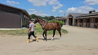 30日に千葉県のニューエラ富里分場に移動しました。 牧場担当者「本日富里の分場に無事到着しました。熱はなく飼い葉も食べています。体重は体重計に乗らなくてまだ計れていないので、落ち着いてから計測したいと思います。一旦分場の方で鞍つけ、洗い場馴致などを行い、乗れるようになったら本場に移動しようと思っています。その期間は2~3週間になるかと思います」
